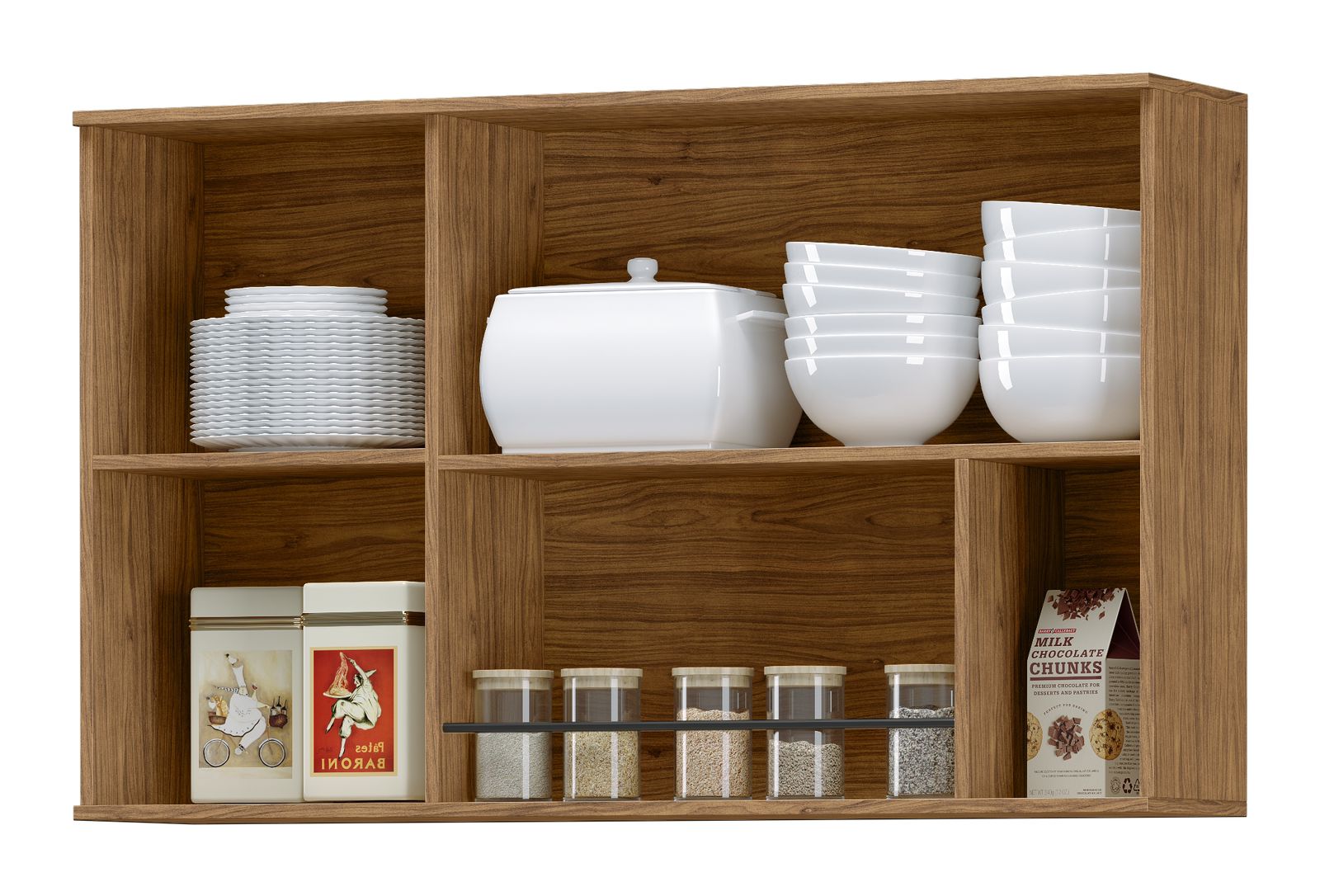 Aéreo e produzido em MDF, o modulo de composição da Cozinha Toscana. O sistema de montagem do mesmo é bem simples e se baseia em cavilhas e parafusos. O mesmo também acompanha manual de montagem.