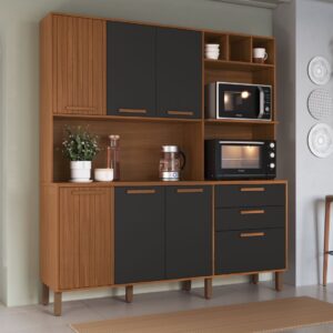 O design se destaca pelos seus pés retangulares, que proporcionam estabilidade e um charme a mais ao conjunto. As 4 portas com abertura convencional oferecem um amplo espaço interno, ideal para organizar louças, copos, objetos de decoração e o que mais você desejar.