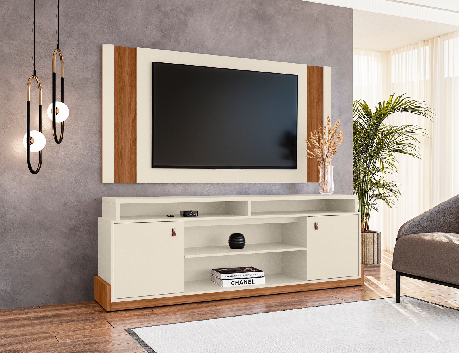 Bancada para apoio com painel para tv até 75 polegadas. com seu estilo simples, porém refinado, a bancada esbanja conforto, ornamento de simplicidade na sua essência, dando um toque especial na sua sala.