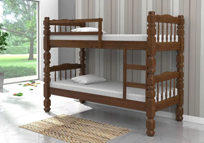 Confeccionado com madeira pinus, sua estrutura possui mais resistência e oferece mais segurança para as suas noites de sono.
