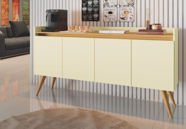 Precisa de um espaço extra para acomodar utensílios de servir ou mesmo criar um cantinho do café bem charmoso? Então pode contar com o Buffet Gold 4 Portas com Pés Palito! Com design clean que se encaixa perfeitamente em diferentes tipos de lar-style, ele é a opção ideal para embelezar sua casa e, claro, deixar tudo em ordem, desde pratos e taças até bandejas menores, copos do dia a dia e xícaras de café.