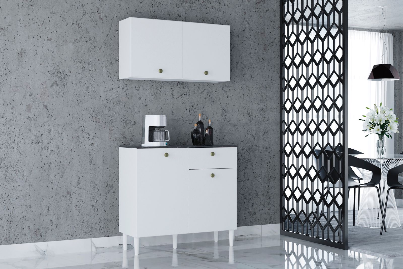 O Armário Aéreo com Balcão é ideal para organizar seu espaço com praticidade e rapidez. O modelo possui um design elegante e moderno para complementar sua cozinha ou despensa, com grande estilo.