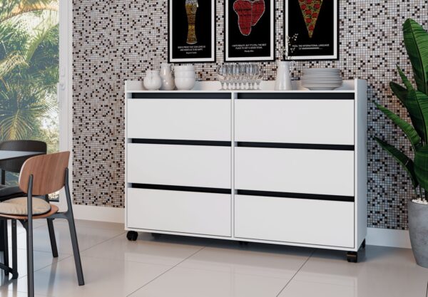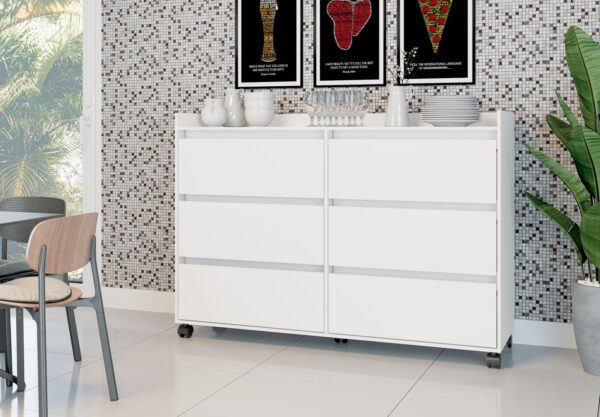Cômoda Prima é um complemento primoroso tanto para a décor quanto para a organização. Ideais para as peças que ficam dobradas, as 6 gavetas são reforçadas pelo tampo amplo, que pode apoiar caixas organizadoras para aqueles objetos menores ou até mesmo alguns enfeites que vão deixar o espaço com a sua cara.