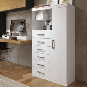 A cômoda Valença é um móvel extremamente prático, versátil e cabe em qualquer cantinho da casa. Suas 06 amplas gavetas deslizam sobre corrediças metálicas, e no tampo, é possível colocar objetos de até 10 kg, como TV por exemplo. Pode ser usada no quarto, na sala, na lavanderia…e o melhor, com todo espaço para guardar tudo que você precisa.