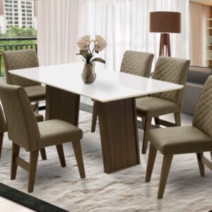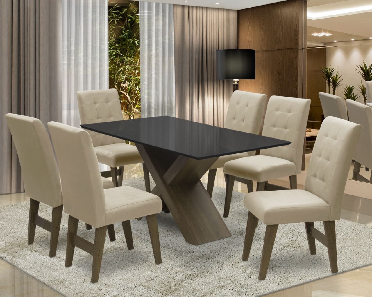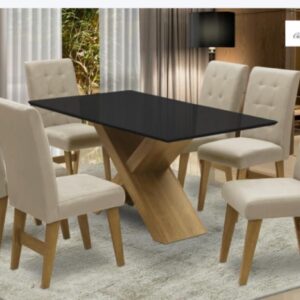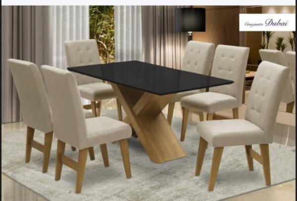 CONJUNTO DE MESA DUBAI TAMPO DE VIDRO DE 1.60 e 1.80