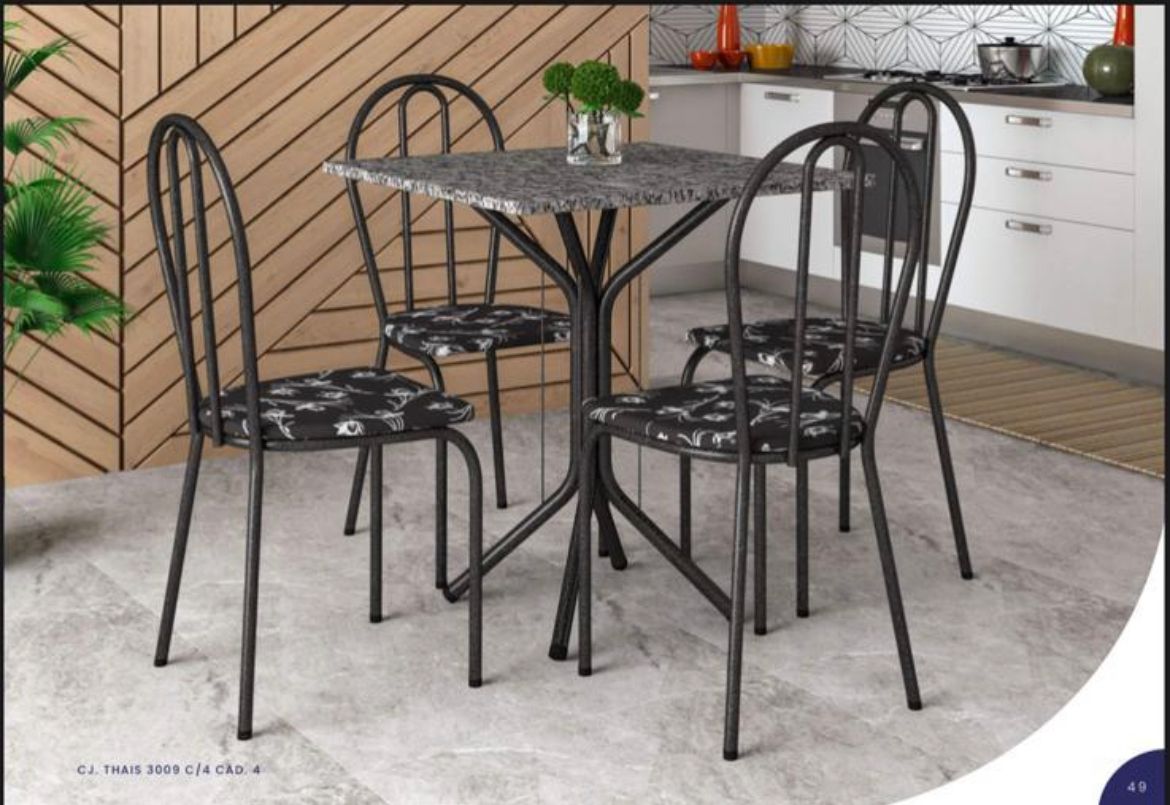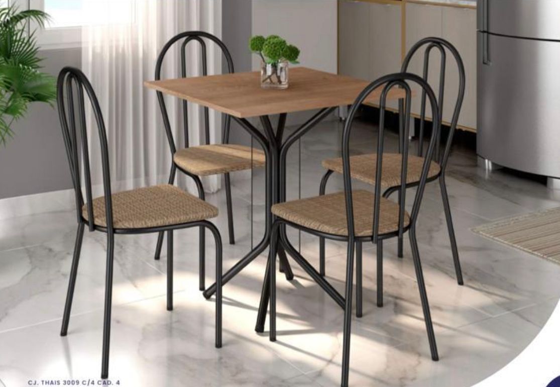 Juntar a família para aquele almoço de domingo é tudo de bom, né Com este maravilhoso Conjunto de Mesa e 4 Cadeiras Thais você poderá acomodar a todos com muito conforto em volta da mesa. Além de serem confeccionados em materiais de excelente qualidade, os móveis também contam com design impecável, conferindo elegância e muito bom gosto à decoração da sua sala de jantar ou cozinha. Agora é só preparar aquela receita especial e chamar o pessoal! 😉