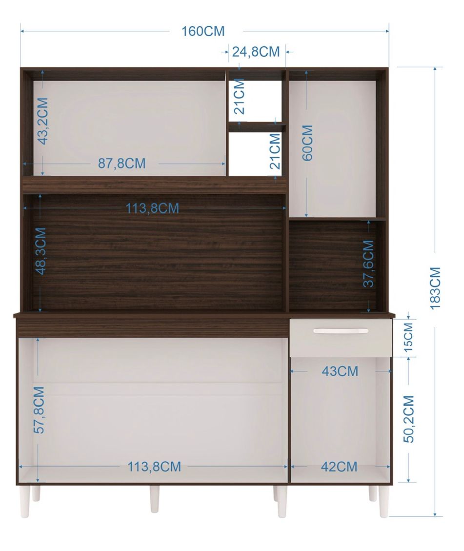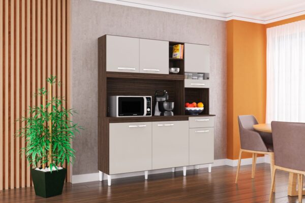 A Cozinha Barbara, foi desenvolvida pensando em você que não tem muito espaço, mas não abre mão da organização e modernidade, conta com lindo design, amplo espaço interno com repartições para melhor organizar seus utensílios, fabricado com materiais de ótimas qualidades proporcionando maior durabilidade ao móvel.