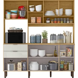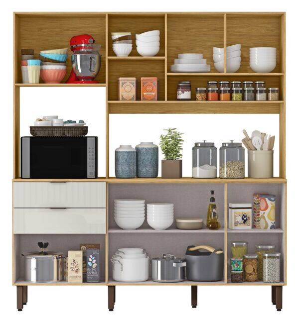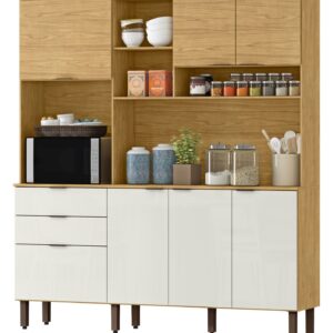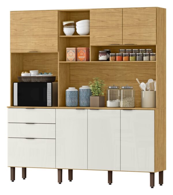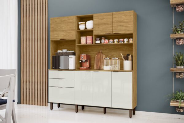 A Cozinha Compacta Boreal 7 Portas 2 Gavetas Marrocos/Off White é produzido em MDP na escala de brilho Semi-Brilho.
