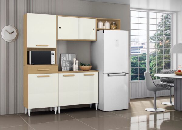 Transforme sua cozinha em um espaço funcional e cheio de estilo com a cozinha Isabelle! Conta com 4 portas, sendo 2 de correr, espaço para acomodar forno micro-ondas e demais aparelhos de utilidade doméstica. Além de possuir pés em plástico resistente que não agridem o piso. Confeccionado com produtos de qualidade, que oferece ao móvel beleza, resistência, durabilidade!