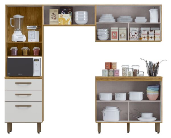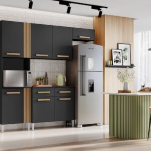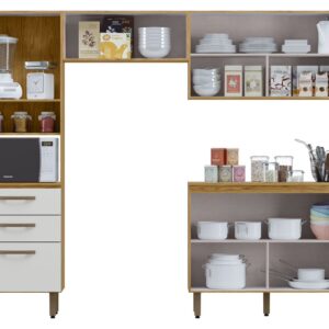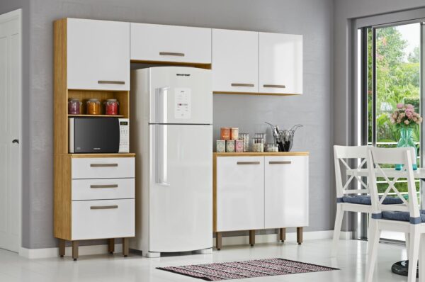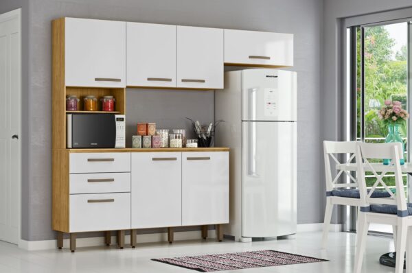 A cozinha Lana é uma excelente opção de custo-benefício para você que procura espaço, praticidade e um design moderno e inovador. Produzida em MDP, ela é ideal para organizar seus utensílios domésticos.