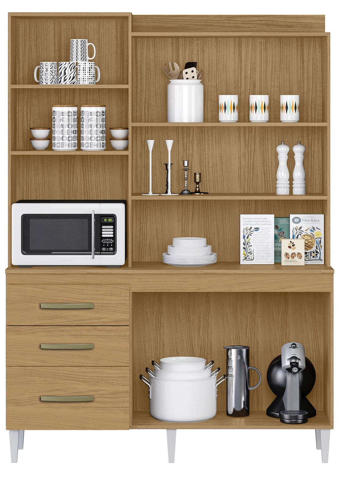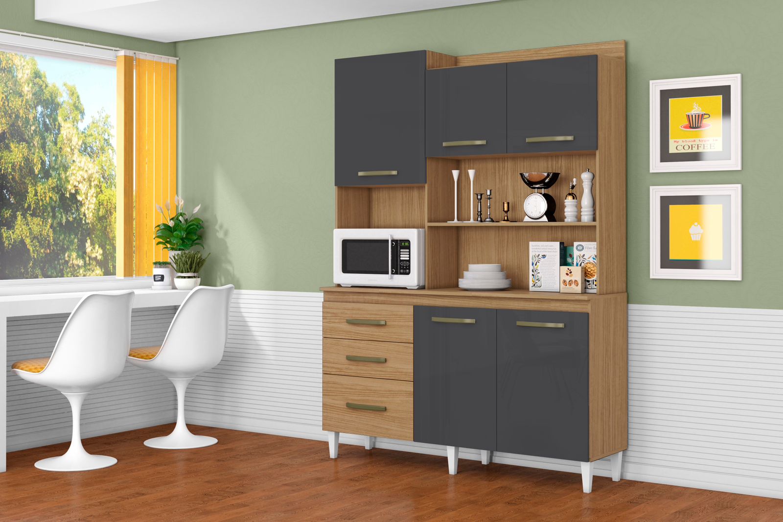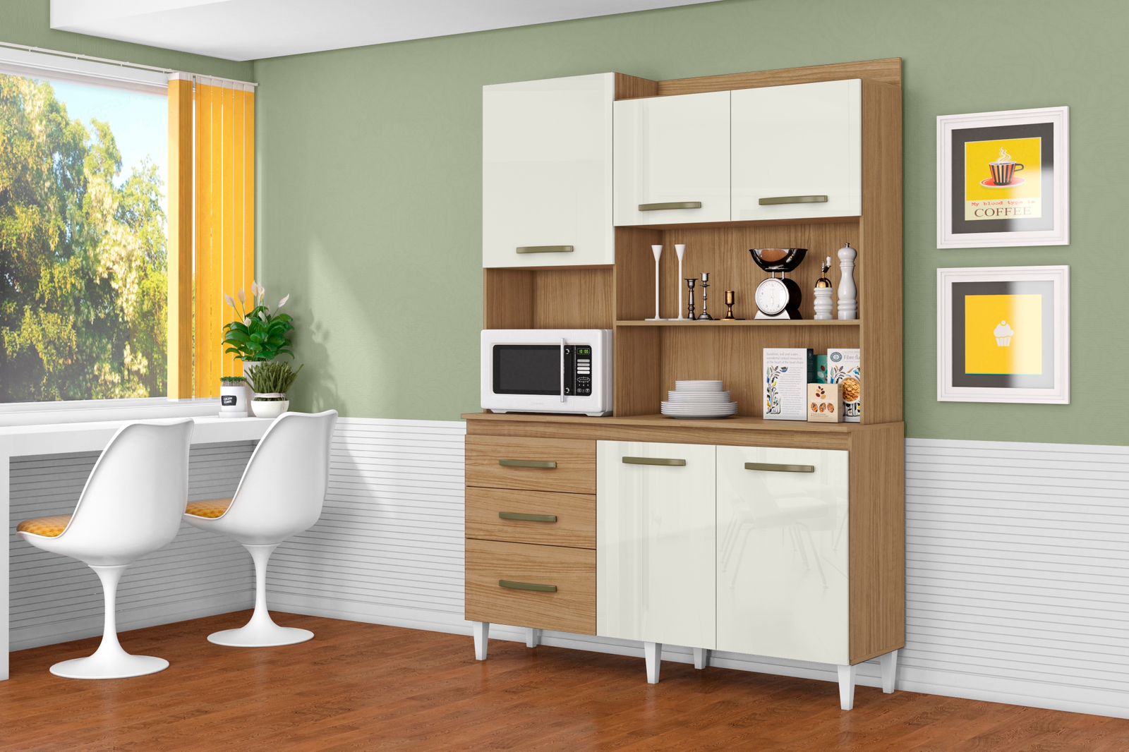 Cozinha Mila, 05 portas e 03 gavetas. Produzido inteiro em MDP e MDF 03mm, 12mm e 15mm de espessura, proporcionando resistência e durabilidade. Amplo espaço interno, garantindo maior firmeza ao móvel. Puxadores de plástico dando maior resistência. Gavetas amplas com melhor fixação, corrediça de metal. Dobradiças metálicas dando maior durabilidade e resistência ao abrir e fechar as portas. Acabamento em verniz texturizado fosco e verniz brilho nas portas, garantindo a conservação do móvel, além de manter a beleza constante oferece ao móvel, resistência e durabilidade prolongando a vida útil do produto.