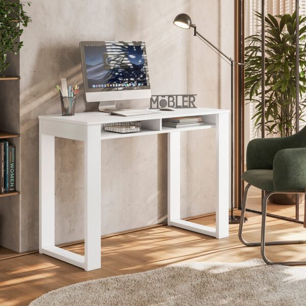 Essa Escrivaninha oferece uma superfície ampla e confortável para estudar ou trabalhar, além de contar com dois compartimentos que podem acomodar livros, pastas, agendas e outros materiais que podem auxiliar nas atividades do dia a dia. A Mesa Para Computador tem um design que combina com diversos ambientes e estilos de decoração, trazendo leveza e elegância para o seu espaço. Essa Escrivaninha Para Quarto é feita de MDP que é um material resistente e durável, e também pintura UV garantindo qualidade e praticidade para o seu dia a dia, incrível né?