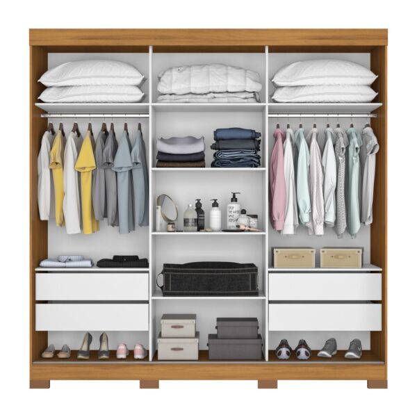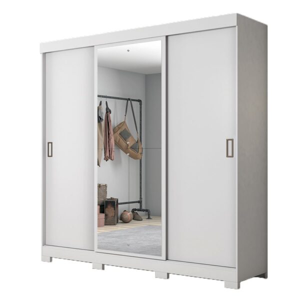 Para quem está precisando de bastante espaço, o guarda-roupa 5020 é uma ótima escolha. Possui 3 portas deslizantes, cabideiros em alumínio, quatro gavetas internas com corrediças telescópicas e muito, mas muito espaço para você organizar seus pertences. E não podemos esquecer dos espelhos centrais, que dão um toque especial ao guarda-roupa e sempre vai lhe auxiliar na escolha do look