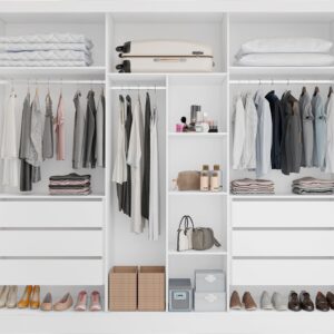 O Guarda Roupa Alvorada seis portas é sinônimo de sofisticação e funcionalidade. Fabricado com matéria-prima de primeira qualidade em 100 MDF e estrutura reforçada, oferece durabilidade e resistência. Seu amplo espaço interno é dividido no sistema ELE e ELA, proporcionando praticidade na organização. Conta com seis gavetas internas com corrediças telescópicas que garantem deslizamento suave e duradouro, além de um nicho organizador com três prateleiras centrais ideais para acessórios e roupas dobradas. Possui ainda espaço dedicado para roupas longas, cabideiros em alumínio e puxadores em madeira envelopada, que agregam elegância ao design.