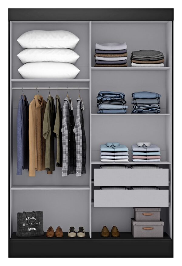 O Guarda-Roupa Cancun e para você que busca um produto que ocupe pouco espaço no seu ambiente, mas seja funcional e armazene tudo. Ele conta com 2 portas de correr, 2 gavetas internas, cabideiro e prateleiras muito bem distribuídas para aproveitar cada espaço da melhor forma!