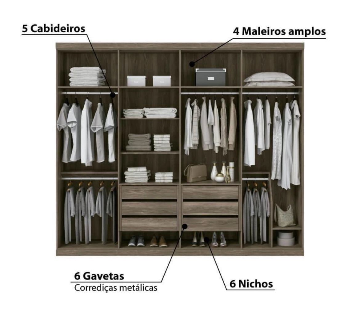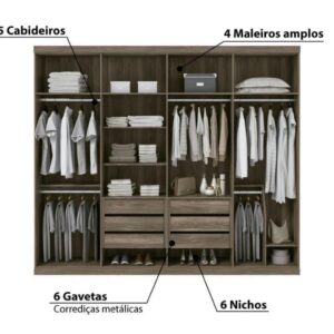 Puxadores em Alumínio Espaço para roupas longas Espaço para sapatos Amplos maleiros