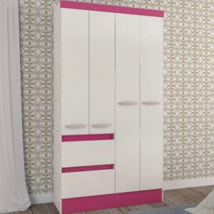 Complete o quarto do seu filho(a) com o Guarda roupa Infantil, cheio de alegria, como deve ser a vida do seu filho. Possui 3 portas, 2 gavetas, diversas prateleiras e cabideiro. Além disso, você pode optar em montar na cor branca ou branca com rosa.