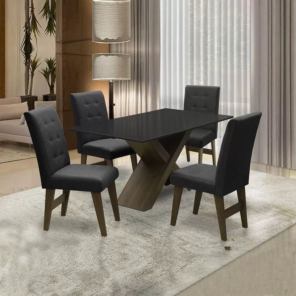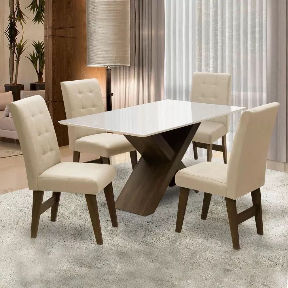 Conjunto De Mesa Valência Tampo De Vidro