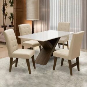 Esse lindo conjunto de Mesa Dubai, que vai levar charme e beleza à sua casa. Além de bonito e elegante, ela facilita o seu dia a dia, pois foi produzida com material resistente e fácil de limpar.