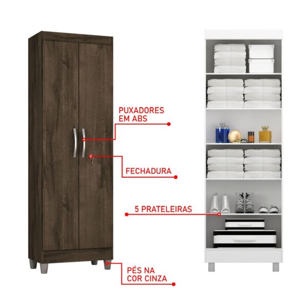 O multiuso Chicago com chave nas portas, é ideal para diversos cômodos da sua casa. Ele possui 5 prateleiras bem distribuídas e espaçosas para organizar seus pertences, garantindo que você organize, e mantenha a segurança.
