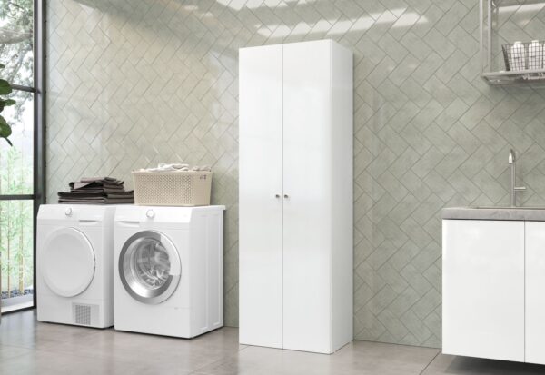 Armário Multiuso Polaris 2 Portas 4 Prateleiras Branco Neve – Móveis é produzido em MDP na escala de brilho Alto Brilho.